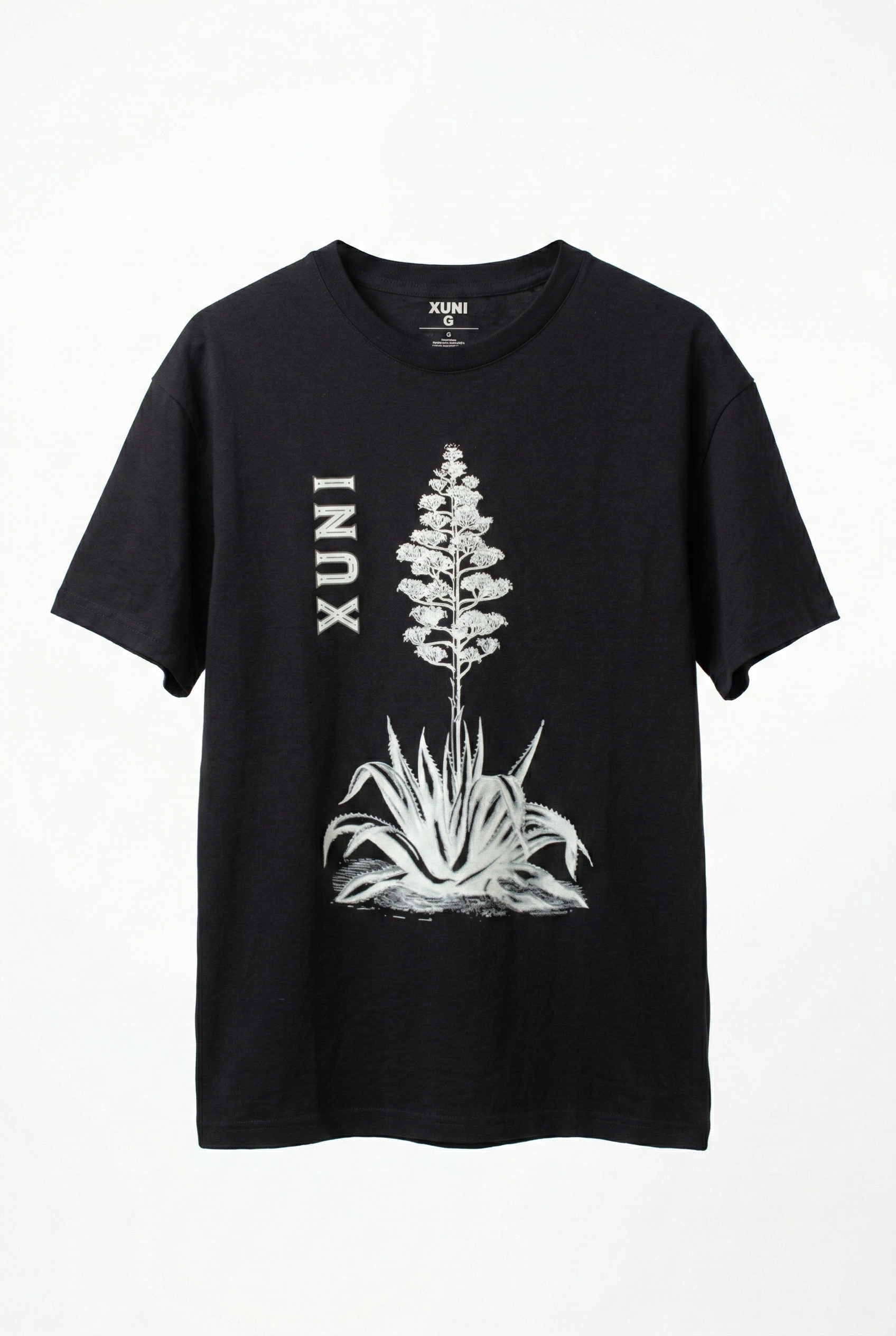 Playera de Algodón Premium en Negro Obsidiana con Ilustración de Agave – Unidad